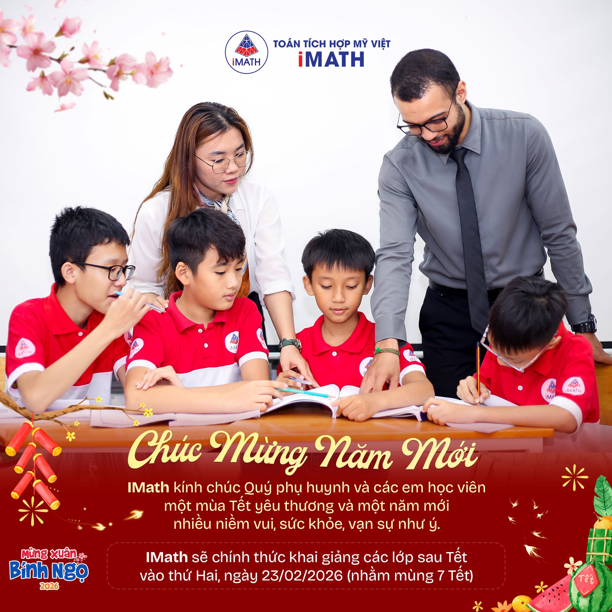 Trong không khí hân hoan chào đón Xuân Bính Ngọ 2026, iMath – Toán Tích Hợp Mỹ Việt trân trọng gửi đến Quý Phụ huynh
